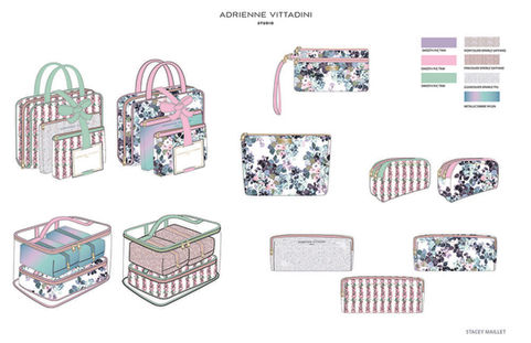 Reimagining pastel for Mother's Day. The Prints were a Nylon Polyester and also a PVC material so, the calibration of each material's finish had to be a seamless match. The product assortment, material assignment and graphic artwork are all original. Designed for the Adrienne Vittadini brand, while under license to Tri-Coastal.