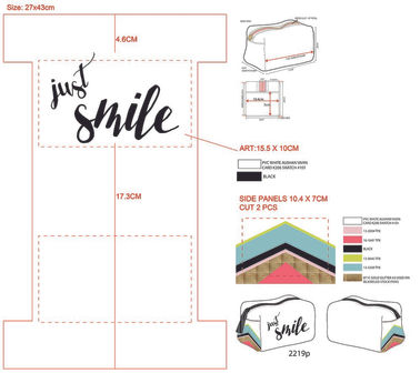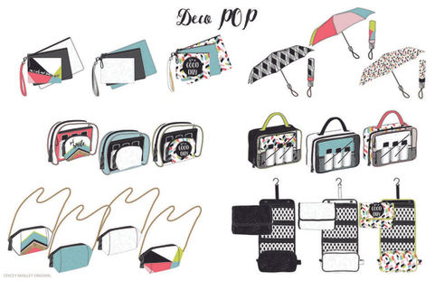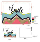 A line of cosmetic bags, small impulse items and accessories. Featuring verbiage like: "Am I rich and famous yet?", "Just smile" and "Have a good day."